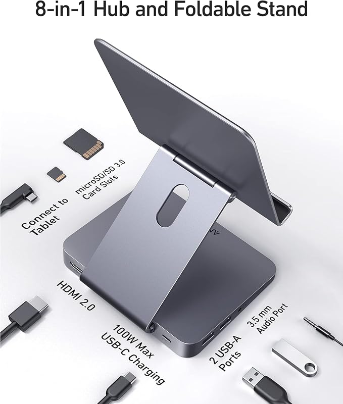Revolutionize your workspace with the Anker 551 USB-C Hub (8-in-1 Tablet Stand), designed to turn your iPad Pro or USB-C tablet into a complete productivity tool. With adjustable angles, heights, and orientations, this hub ensures optimal comfort and functionality for any task, making remote work and home office setups easier than ever.