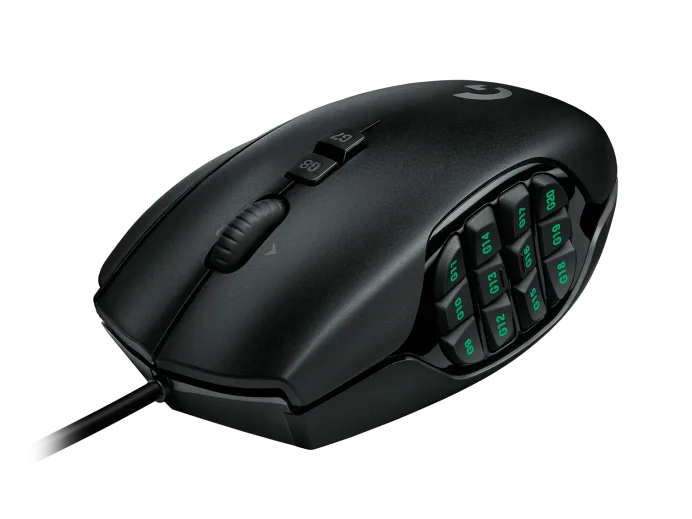 The Logitech G600 MMO Gaming Mouse is a popular gaming mouse designed for Massively Multiplayer Online (MMO) gamers who require a high number of customizable buttons for quick and easy access to in-game commands and macros. Here's a description of its key features: